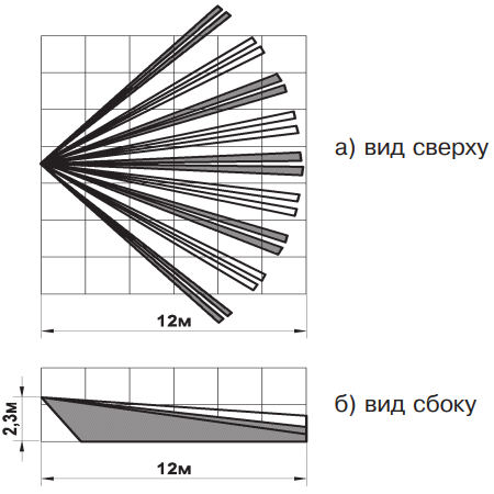 - объемная зона обнаружения с высокой плотностью заполнения;